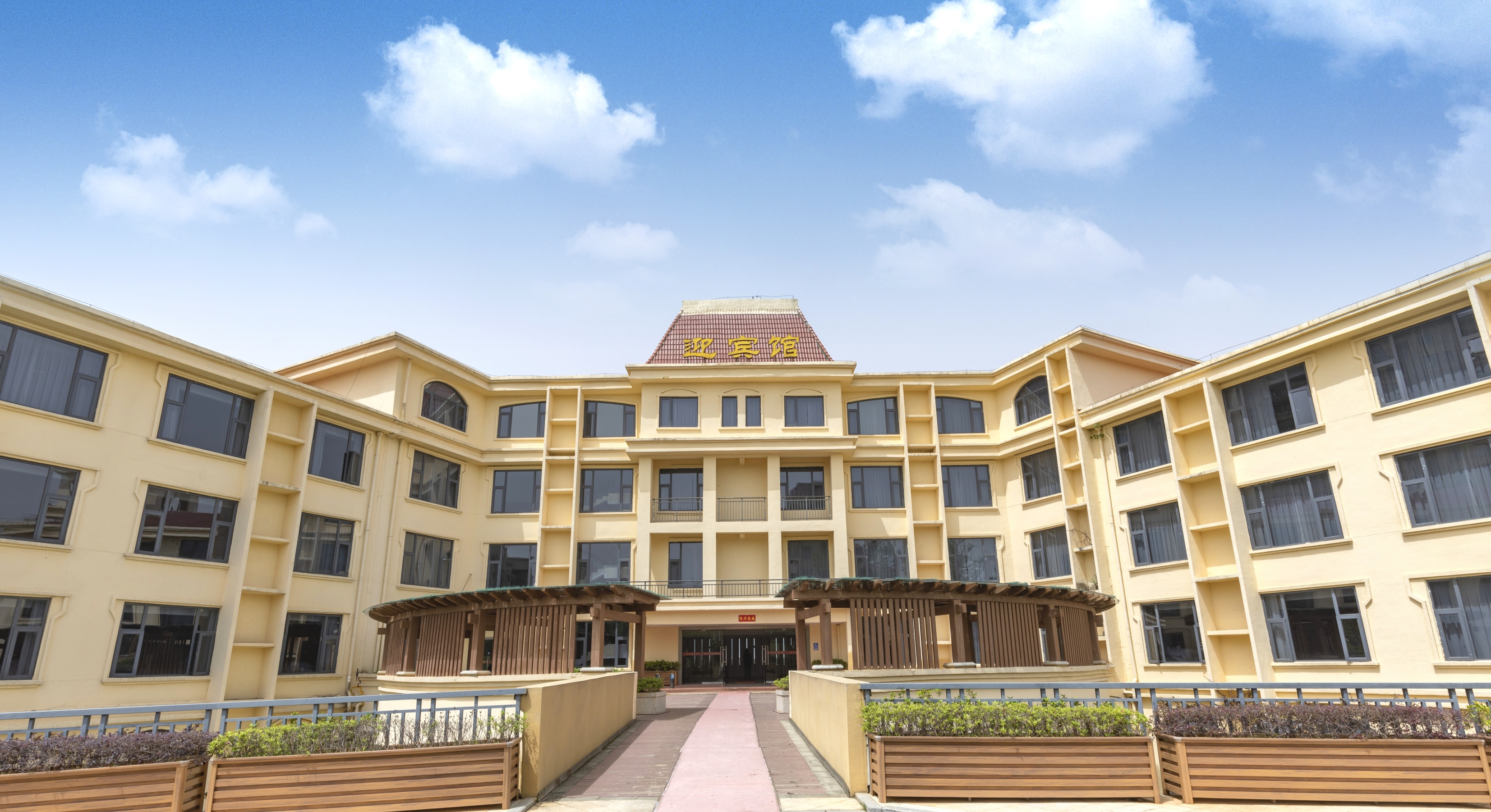 宾馆位于湖东新区开元大道东侧中段,与县政府、湖东市民公园遥相呼应,是永修县一颗璀璨的明珠;迎宾馆与园林景观融为一体,绿色覆盖率达到80%,让人在自然中感悟返璞归真的意境,在喧嚣里体会生命与绿色的和谐。地理位置优越。酒店地理位置优越,环境幽雅,绿植花草青翠欲滴、徒步之中悠然自得。配套设施齐全。迎宾馆是一家按标准打造的集住宿、餐饮为一体的商务休闲酒店。酒店主楼高五层,房间宽敞明亮、舒适洁净、格调高雅,是您居家旅行、外埠商旅停泊的理想港湾。酒店餐饮贵宾包房8间,宴会厅可同时容纳260人用餐;另外酒店还拥有会议室、健身房、灯光篮球场等活动区域,是您商务洽谈、放松身心的首选之地。服务细致入微。迎宾馆全体员工用心向上,拼搏进取,并始终坚持宾客至上、诚信服务的宗旨,以亲切的笑容、贴心的服务、快速的应变、高效的团队协作迎接八方来客。人在旅途,家在迎宾馆。永修迎宾馆欢迎您的到来!